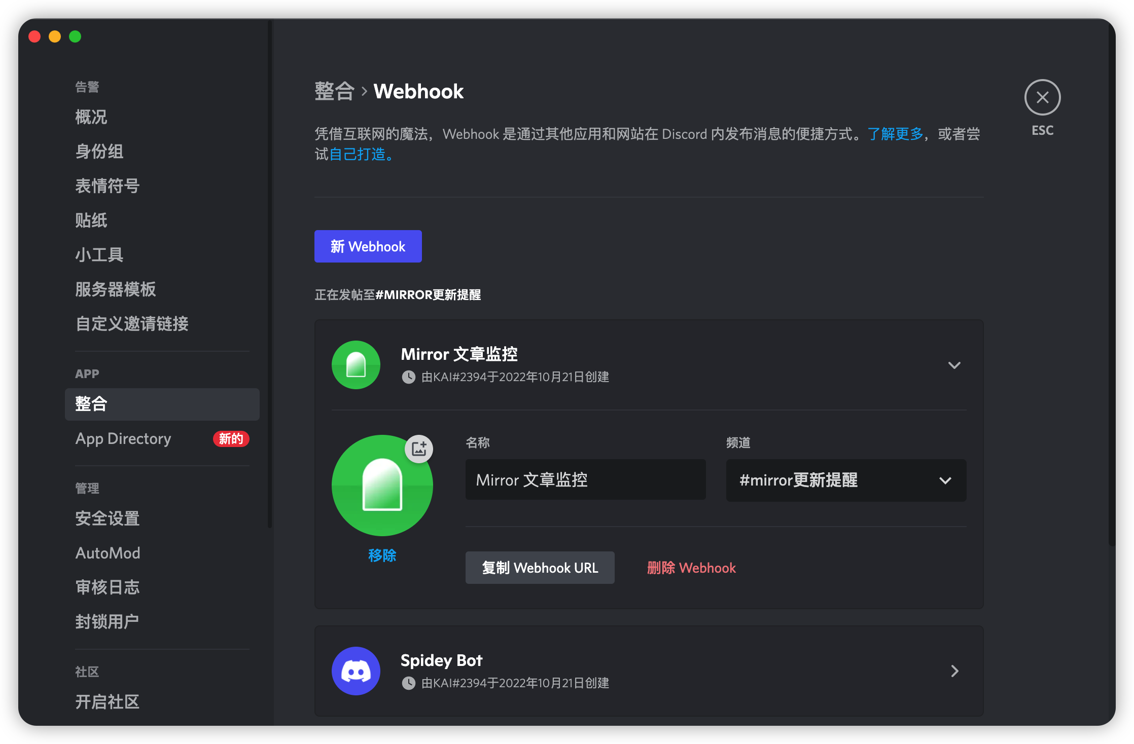 When pushing messages to the Discord service, users need to create a new Webhook connection within the specified Discord server. The configuration process is as follows: