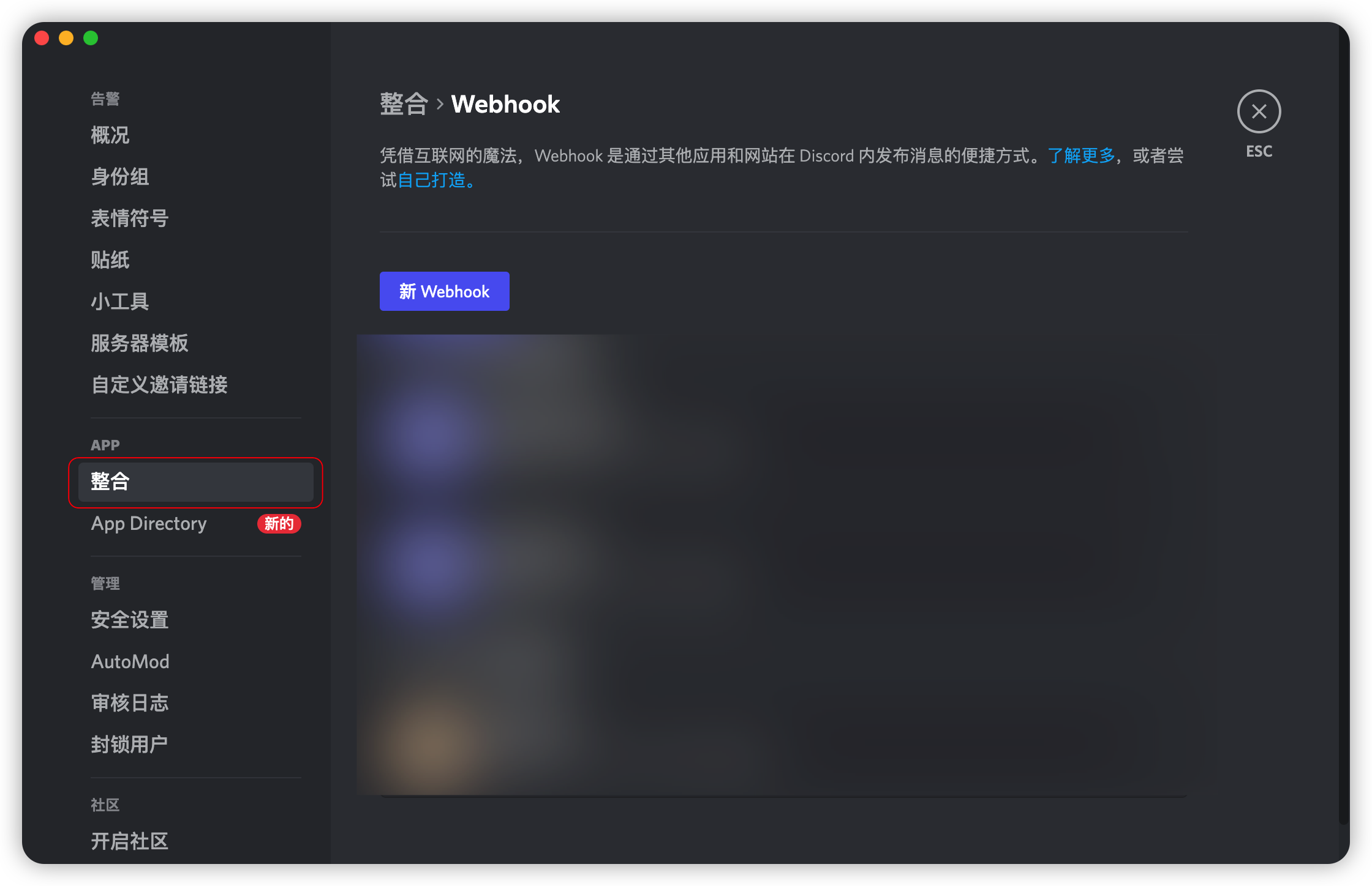 1. Open "Server Settings" -> APP -> "Integrations" on the specified server in Discord.