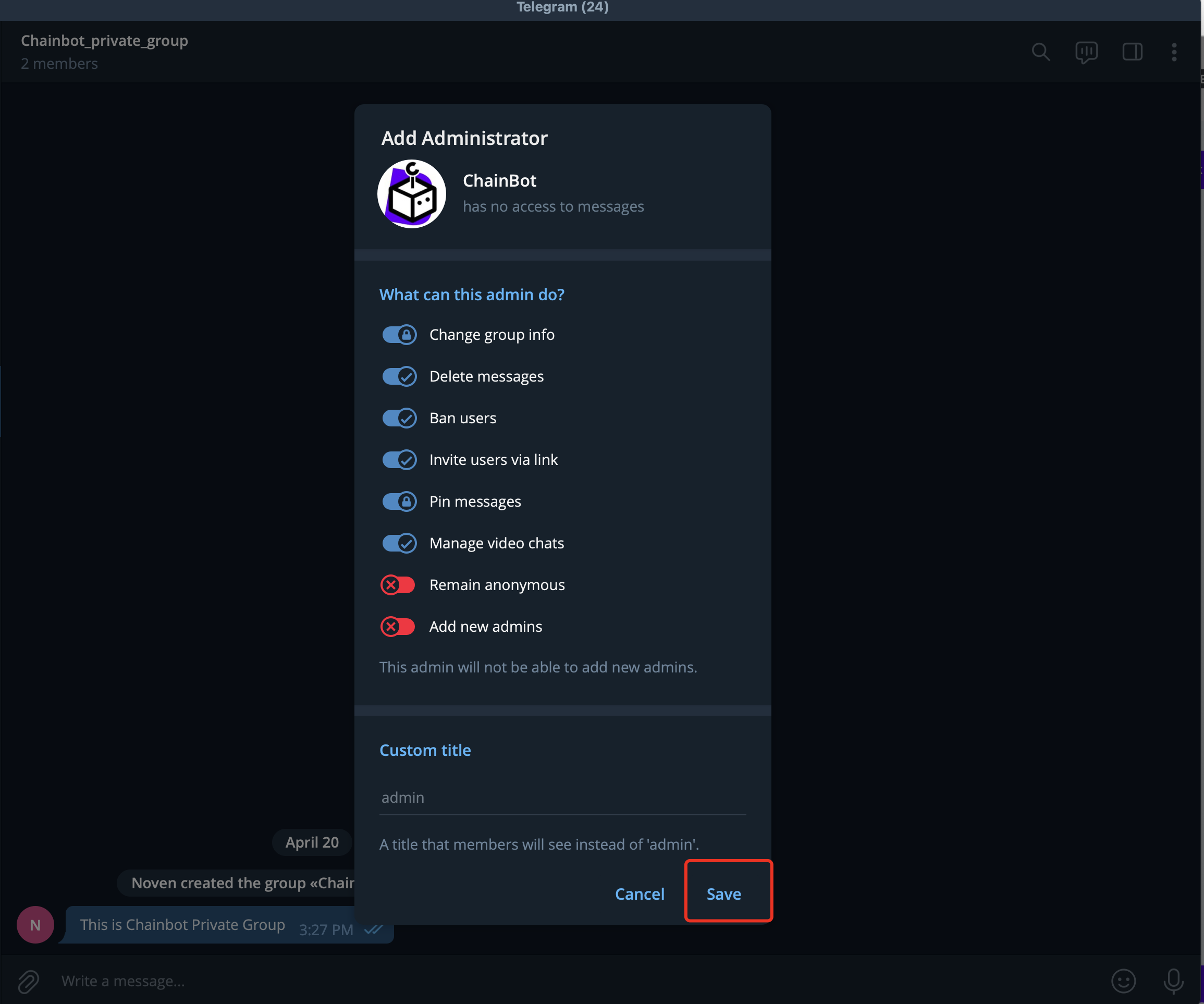 Adding the ChainBot Bot to the Group