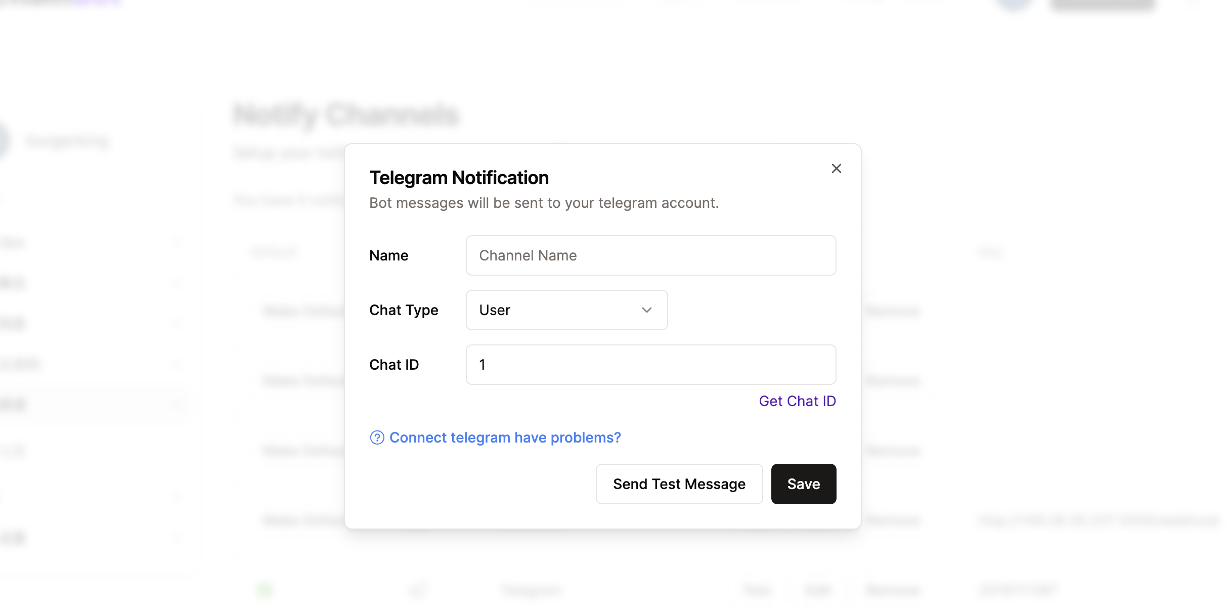 Fill in the Chat ID or Group Name on the ChainBot platform